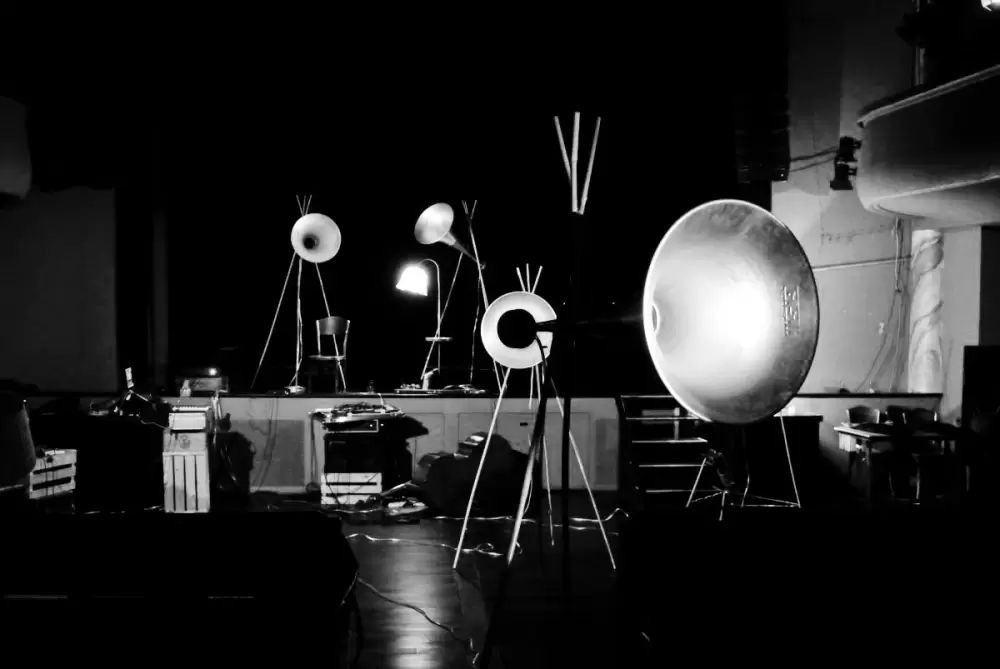 Die Streichinstrumente werden über eine mehrkanalige Lautsprecherinstallation im Raum verteilt und mit Live-Elektronik ergänzt.