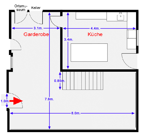 Eingangsbereich; Blick ab der Treppe zum 1.OG.